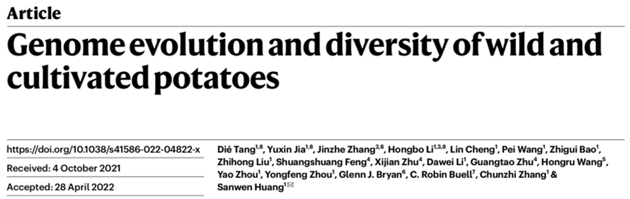 6月8日,《自然(Nature)》杂志在线发表了“优薯计划”的最新研究成果,题为“Genome evolution and diversity of wild and cultivated potatoes”。该研究组装了多个高质量马铃薯参考基因组,鉴定得到多个高质量的结构变异,并且首次构建了栽培和近缘野生马铃薯的大片段倒位图谱,为马铃薯杂交改良提供了重要指导。
