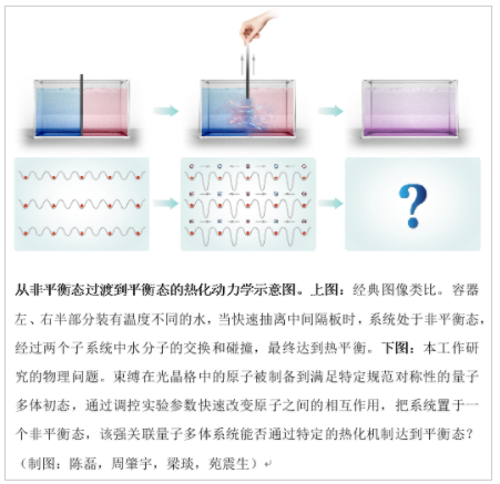 中国科学技术大学潘建伟、苑震生等与德国海德堡大学、奥地利因斯布鲁克大学、意大利特伦托大学的相关研究人员合作在超冷原子量子模拟研究中取得重要进展:他们使用超冷原子量子模拟器,对格点规范场理论中非平衡态过渡到平衡态的热化动力学进行了模拟,首次在实验上证实了规范对称性约束下量子多体热化导致的初态信息“丢失”,取得了利用量子模拟方法求解复杂物理问题的重要进展。北京时间07月15日,国际著名学术期刊《科学》杂志发表了该研究成果。