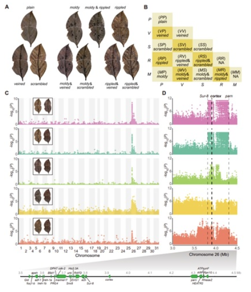 为剖析枯叶蛱蝶属翅腹面叶形多态性的遗传学机制,本研究聚焦枯叶蛱蝶中华亚种,基于78份个体样本的二代基因组重测序数据,对其10种叶形表型进行了全基因组关联分析,同时结合从基因组从头组装、基因表达、染色质相互作用分析和CRISPR/Cas9介导的基因组编辑中获得的证据,本研究确定叶形拟态表型的多态性由cortex基因调控,鉴定出5个主要的cortex单倍型,并发现包括染色体倒位,拓扑关联结构域(topologically associating domain, TAD)等机制维持了三个单倍型中cortex基因附近区域的强连锁。此外,通过对枯叶蛱蝶属的cortex基因进行分型和群体遗传学建模分析,本研究发现由频率依赖的负选择驱动的平衡选择模型可以较好地拟合真实情况,且叶形拟态的多态性产生于属内物种分歧之前。这为跨物种的,长期的平衡选择提供了一个罕见的、具有明确适应性质的实例。
