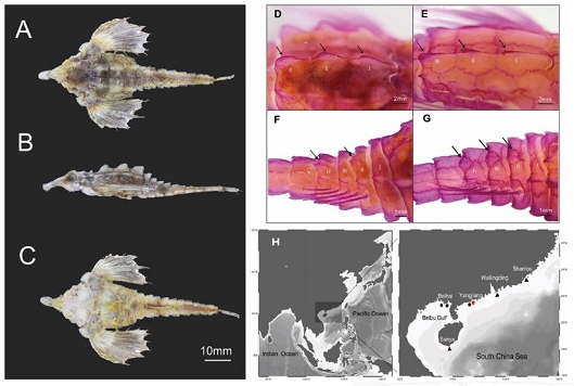 中国科学院南海海洋研究所研究员林强团队在海龙目鱼类资源与分类领域取得研究新进展,基于近岸海龙目鱼类资源调查和系统分类研究,在我国南海和东海近岸海域发现了2个海蛾鱼新种,分别命名为南海海蛾鱼(Spinipegasus nanhaiensis sp. nov.)和中华海蛾鱼(Pegasus sinensis sp. nov.)。相关成果相继发表在Zootaxa(《动物分类学》)和Zoological Research(《动物学研究》)杂志上。