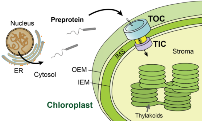 TOC-TIC将核基因编码的蛋白转运进叶绿体