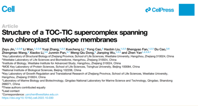 西湖大学闫浈课题组《Cell》发文破解叶绿体“守门人”之谜
