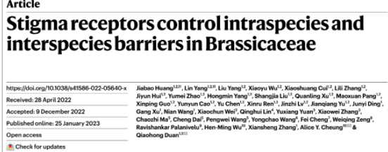 北京时间2023年1月26日,国际著名学术期刊《自然》(Nature)在线发表了山东农业大学段巧红教授领衔的蔬菜生殖机理与育种应用团队的研究成果。