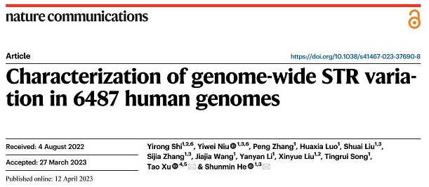 2023 年4月12日,中国科学院生物物理研究所徐涛院士团队和何顺民研究员团队在国际学术期刊《自然-通讯》(Nature Communications)发表论文(图1),介绍了该团队关于STR的最新工作。这项工作也是徐涛、何顺民牵头的 “女娲”(NyuWa)中国人群基因组计划的一部分。