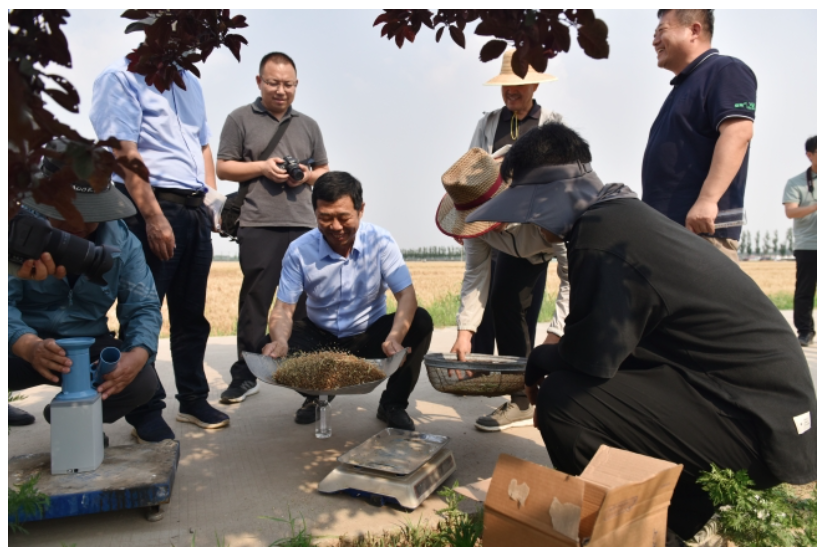 烈日炎炎中,土地丈量、收获脱粒、称重、水分测定、取样测定杂质率等一系列环节结束,专家们给出测产数据:“亩产774.1公斤!”孙维山颇为满意,李建国更是兴奋。作为拥有几千亩地的种植大户,一斤小麦多卖几毛钱收益极为可观。“今年秋季要多种‘山农48’,抱住这个‘金疙瘩’。”他告诉记者。