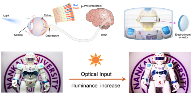 徐文涛教授介绍,团队已经将人造智能角膜装备于机器人进行概念验证,它不仅可以模仿眼轮匝肌的收缩,像人类原生角膜一样具有保护、触觉感知和光折射功能,并且拓展了光感知和环境交互能力,为眼睛在光强度不断变化的环境中提供了额外的自适应保护,比传统人造角膜更加智能。