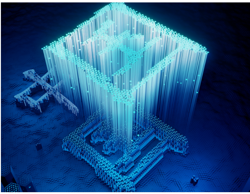 图1. 莫尔纳米激光阵列以“中国”图形生成阵列化相干激射示意图