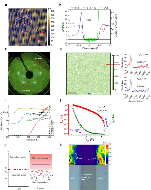天津大学天津纳米颗粒与纳米系统国际研究中心的马雷教授研究团队通过对外延石墨烯生长过程的精确调控,成功地在石墨烯中引入了带隙,创造了一种新型稳定的半导体石墨烯。这项前沿科技通过对生长环境的温度、时间及气体流量进行严格控制,确保了碳原子在碳化硅衬底上能形成高度有序的结构。这种半导体石墨烯的电子迁移率远超硅材料,表现出了十倍于硅的性能,并且拥有硅材料所不具备的独特性质。该项研究实现了三方面技术革新,首先,采用创新的准平衡退火方法,该方法制备的超大单层单晶畴半导体外延石墨烯(SEG),具有生长面积大、均匀性高,工艺流程简单、成本低廉等优势,弥补了传统生产工艺的不足;第二,该方法制备的半导体石墨烯,拥有约600 meV带隙以及高达5500cm2V-1s-1的室温霍尔迁移率,优于目前所有二维晶体至少一个数量级;最后,以该半导体外延石墨烯制备的场效应晶体管开关比高达104,基本满足了现在的工业化应用需求。