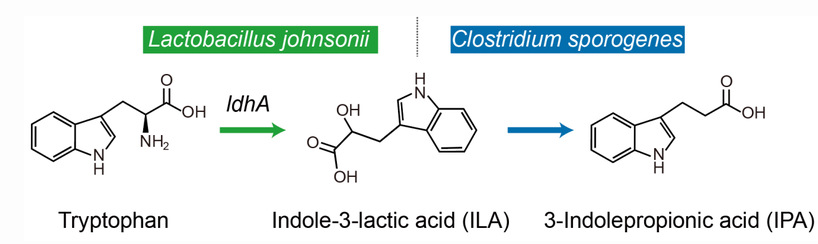 团队发现人体粪便中的主要成员——肠道共生菌可以影响免疫治疗疗效。他们抽丝剥茧寻找其中的奥秘,通过对粪便菌群的测序、筛选,分离了一株潜在的益生菌约氏乳酸杆菌,创新地发现给小鼠定植这种细菌就可以起到增敏免疫治疗的作用,并鉴定出了起效的关键代谢物-吲哚丙酸。