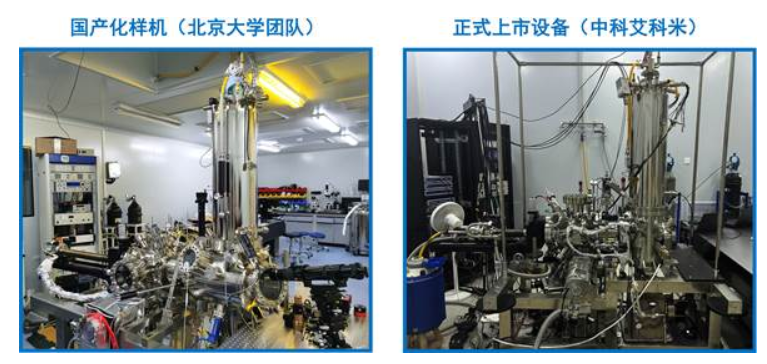 图1. 自行研制的qPlus型光耦合扫描探针显微镜国产化样机(左)和正式上市设备(右)