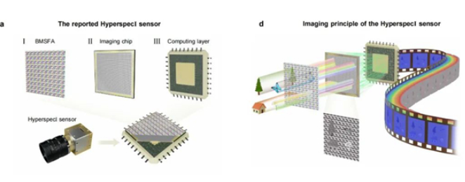 北京理工大学张军院士团队,首创片上光谱复用感知架构,自主研制了国际首款百通道、百万像素高光谱实时成像器件,光能利用率创造世界最高记录。11月7日,团队相关成果发表在《Nature》期刊。文章题为“A broadband hyperspectral image sensor with high spatio-temporal resolution”。团队提出了片上光谱复用感知理论与技术,颠覆了传统几何分光、窄带测量、物理输出模式,实现了片上宽带异化调控的高光谱成像。团队自主研制了高光谱智能成像器件,将光能利用率由典型的不足25%跨越提升至74.8%。该器件仅重数十克,工作波段覆盖了可见光和近红外超宽波段(400-1700nm),具有国际领先的空-时-谱分辨率(1024×1024@124fps,96通道),拥有完全自主知识产权。