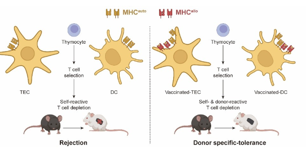 1月3日,来自于同济大学医学院、同济大学附属东方医院与同济大学附属上海市第四人民医院的章小清/刘玲研究团队在国际顶级学术期刊《细胞研究》(Cell Research)上发表题为“Donor MHC-specific Thymus Vaccination Allows for Immunocompatible Allotransplantation”的研究成果。研究开发了一种全新的同种异体移植免疫耐受策略——供体MHC特异性胸腺疫苗接种(DMTV)。