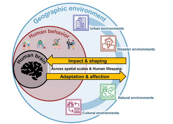 在当前全球城市化、气候变化和跨文化交流快速发展过程中,地理环境深刻影响着人类的性格、认知与行为,而人类的行为也在不断适应和改造着地理环境。复杂地理环境与人类认知行为之间的相互作用关系,是当前国际跨学科交叉研究的难点与热点问题。难点之一是地理环境的空间复杂性,不同地区和空间尺度的环境因素持续、系统地影响着人类行为。另一个难点是人类行为的复杂性,这种复杂性由大脑介导,并随年龄、性别和社会经济地位的不同而变化。