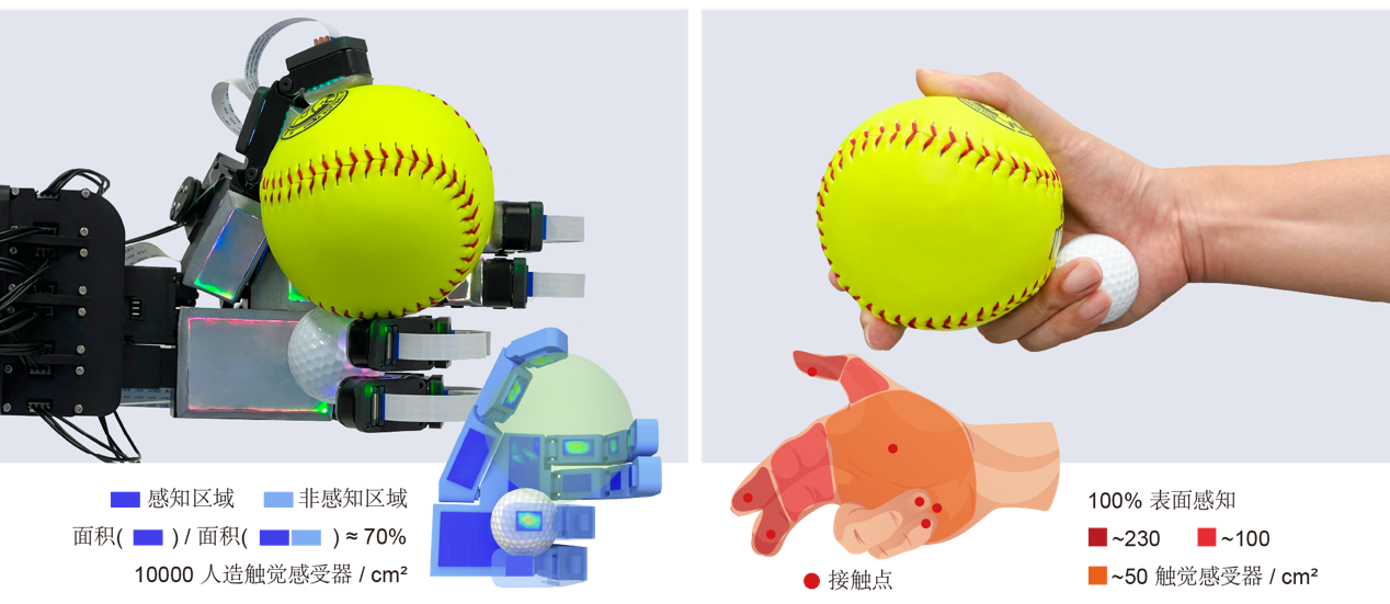 联合科研团队取得的成果是首次在保持完整运动能力的前提下,实现了机器手掌表面70%区域的高分辨率触觉覆盖,使机器人能够像人类一样通过触觉反馈进行精确操作和适应性抓取。