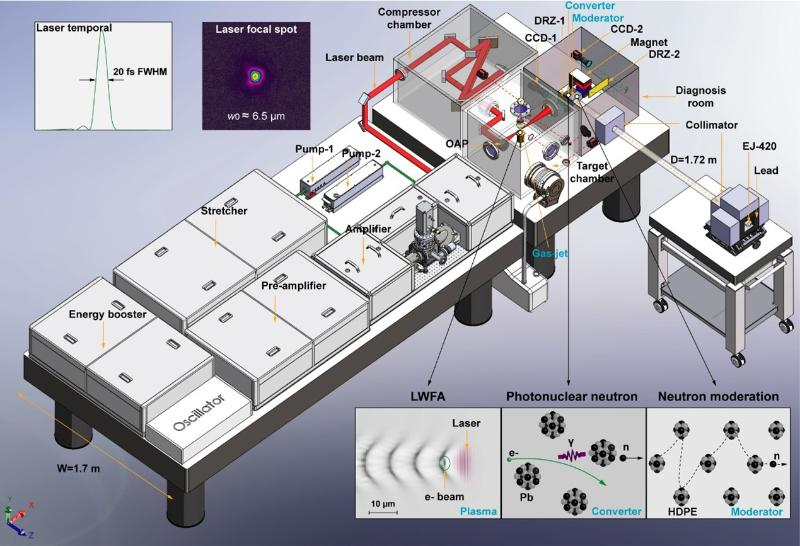图1. 台式化的激光驱动电子加速器的高分辨超热中子共振谱学装置