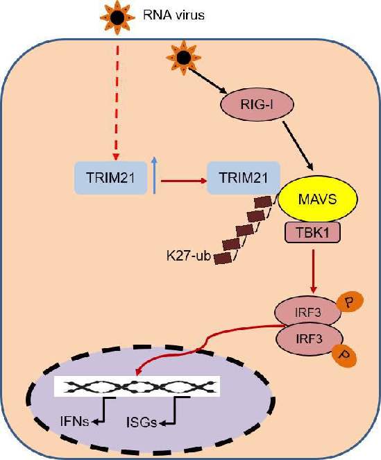 TRIM21通过K27依赖泛素化修饰MAVS, 促使其对TBK1的招募, 促进先天免疫应答