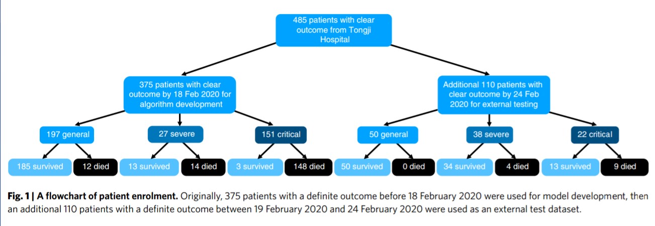 严丽等人收集了中国武汉485名新冠肺炎患者的血液标本,从中寻找可靠且有意义的死亡风险标志物。这些样本的采集时间为2020年1月10日至2020年2月18日,采集地点在华中科技大学同济医学院附属同济医院。