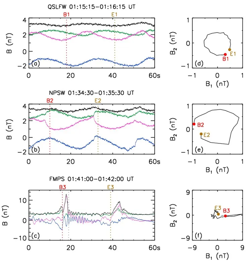 中国科学院地质与地球物理研究所地球与行星物理重点实验室副研究员单立灿与合作者,通过对MAVEN火星探测器的数据分析,发现了由快磁声波(一种磁流体力学波)发展为周期性等离子体激波的关键过程:当正弦型快磁声波被高速太阳风带到靠近火星时,更多的相反方向的离子将能量传输给波动,导致波幅增长和波形变陡;持续地注入能量,最终导致形成周期性激波(图1-图2)。