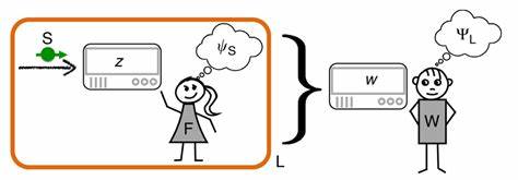 维格纳在1961年提出的表述是让一个朋友(观测者)在一个密闭的实验室里对粒子进行量子态测量,而维格纳(超级观测者)则站在实验室外。