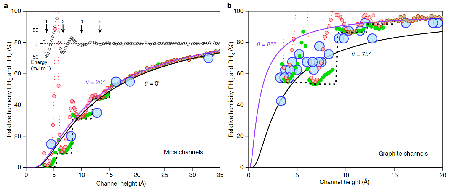 然而,当通道直径缩小到水分子大小相当的尺寸时,由于实验观测难度大,开尔文方程里采用的弯月面曲率、接触角等概念难以被准确定义。如何在纳米尺度下修正开尔文方程,一直是国际学界关心的问题。