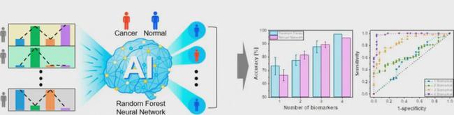 图 | 使用 ML 分析为每个患者收集的一组传感信号,以筛选患者的 PCa。两种算法都提供了更高的准确性,并且随着生物标记数量的增加,AUROC 的大小也增加了(来源:KIST)