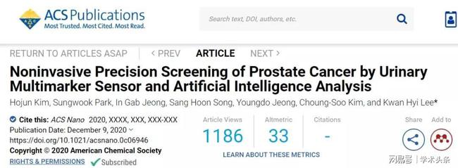 最新研究以“Noninvasive Precision Screening of Prostate Cancer by Urinary Multimarker Sensor and Artificial Intelligence Analysis”为题,于 1 月 21 日发表在国际学术期刊 ACS Nano 上。
