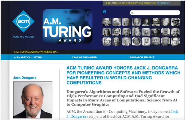 美国计算机协会(ACM)在官网中写道,ACM图灵奖授予JACK J. DONGARRA以表彰其开创性的概念和方法,这些概念和方法推进了给世界带来改变的计算。他在数值算法和库方面的开创性贡献,使得高性能计算软件能够跟上四十多年来的指数级硬件更新。