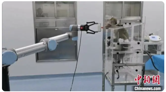 试验通过介入式脑机接口实现动物主动控制机械臂。 南开大学 供图