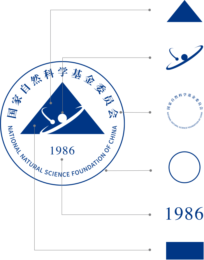 国家自然科学基金委员会标志为“三角形+原子/卫星轨道模型+国家自然科学基金委员会中英文名称+1986”的正圆形设计。