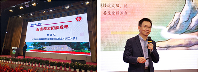 2025年4月15日至16日,国家自然科学基金委员会与中国宋庆龄基金会、昆明市委人才工作领导小组共同主办的“给孩子们的大师讲堂”走进云南中小学科普活动成功举办。在“追寻光的能量”专题讲座中,中国科学院院士、浙江大学杨德仁教授向同学们介绍了太阳能与光伏发电的科学知识,小至人类生活用电,大到卫星航天用电,全方位展示了人类生活和空天领域的太阳能光伏发电应用场景,解密未来新能源。