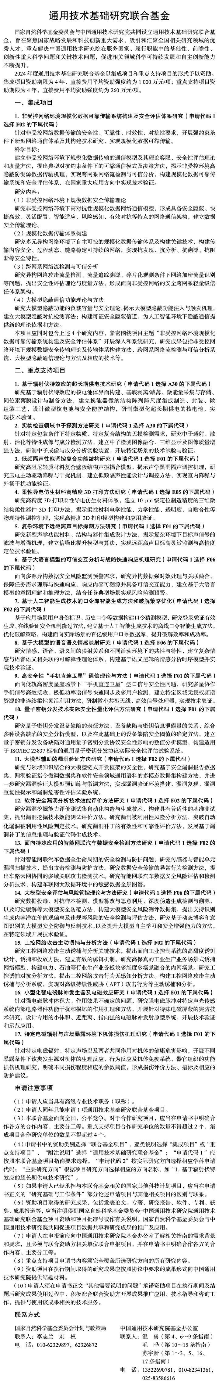 • 2024年度国家自然科学基金改革举措