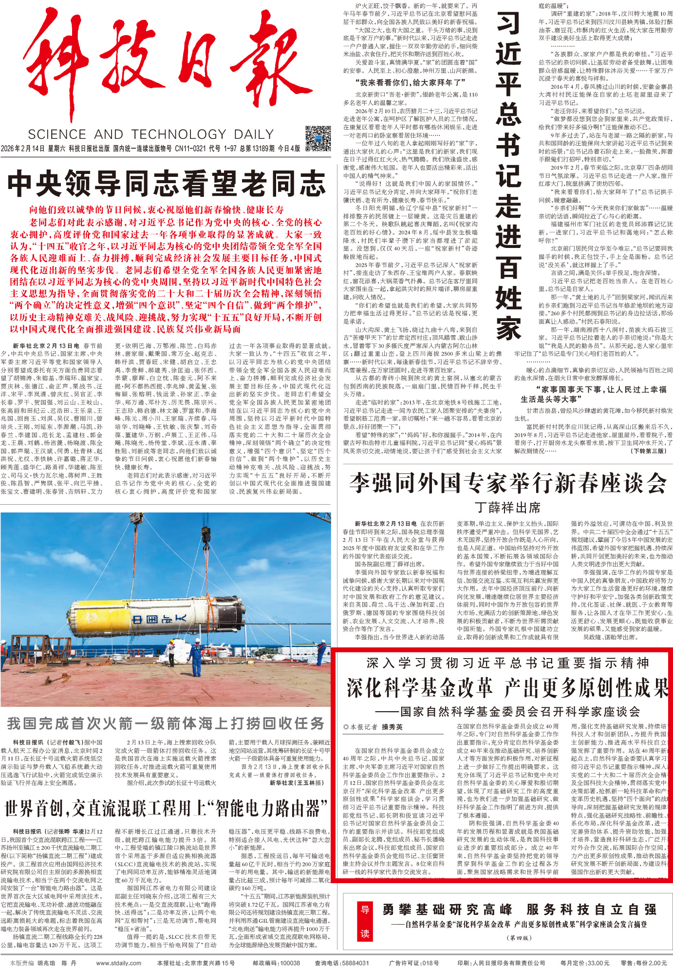 在国家自然科学基金委员会成立40周年之际,中共中央总书记、国家主席、中央军委主席习近平对国家自然科学基金委员会工作作出重要指示。2月12日,国家自然科学基金委员会在北京召开“深化科学基金改革产出更多原创性成果”科学家座谈会,学习贯彻习近平总书记重要指示精神。科技部党组书记、部长阴和俊宣读习近平总书记对国家自然科学基金委员会工作的重要指示并讲话。科技部党组成员、副部长龙腾,党组成员、秘书长潘晓东出席会议,科技部党组成员、国家自然科学基金委员会党组书记、主任窦贤康主持会议并作主题发言。8位来自科研一线的科学家代表作交流发言。