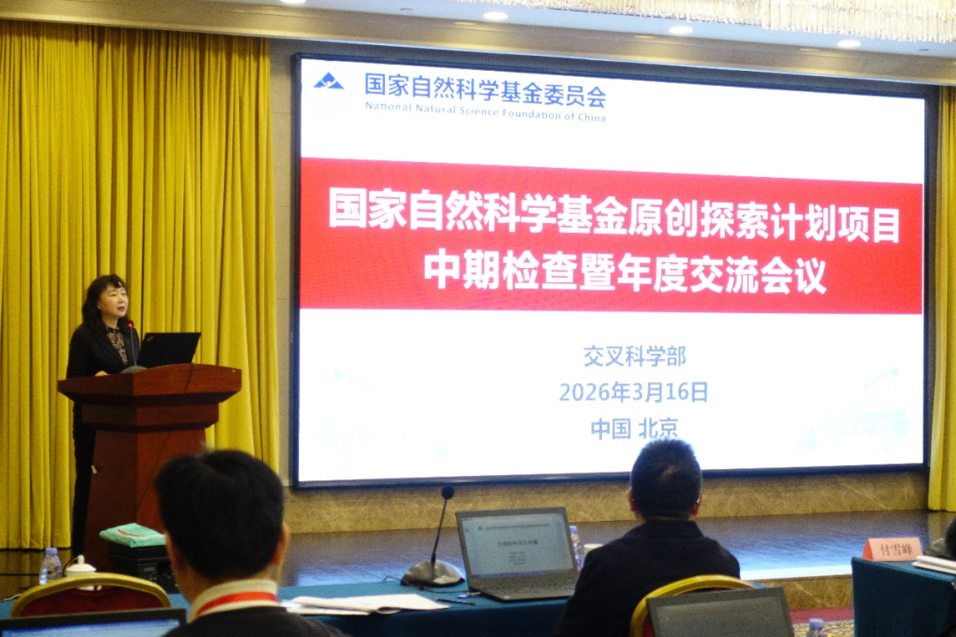 2026年3月16日,自然科学基金委交叉科学部在北京召开2026年度专家推荐类原创探索计划项目中期检查暨年度交流会议。自然科学基金委副主任吴骊珠出席会议并讲话,交叉科学部副主任付雪峰主持开幕式。