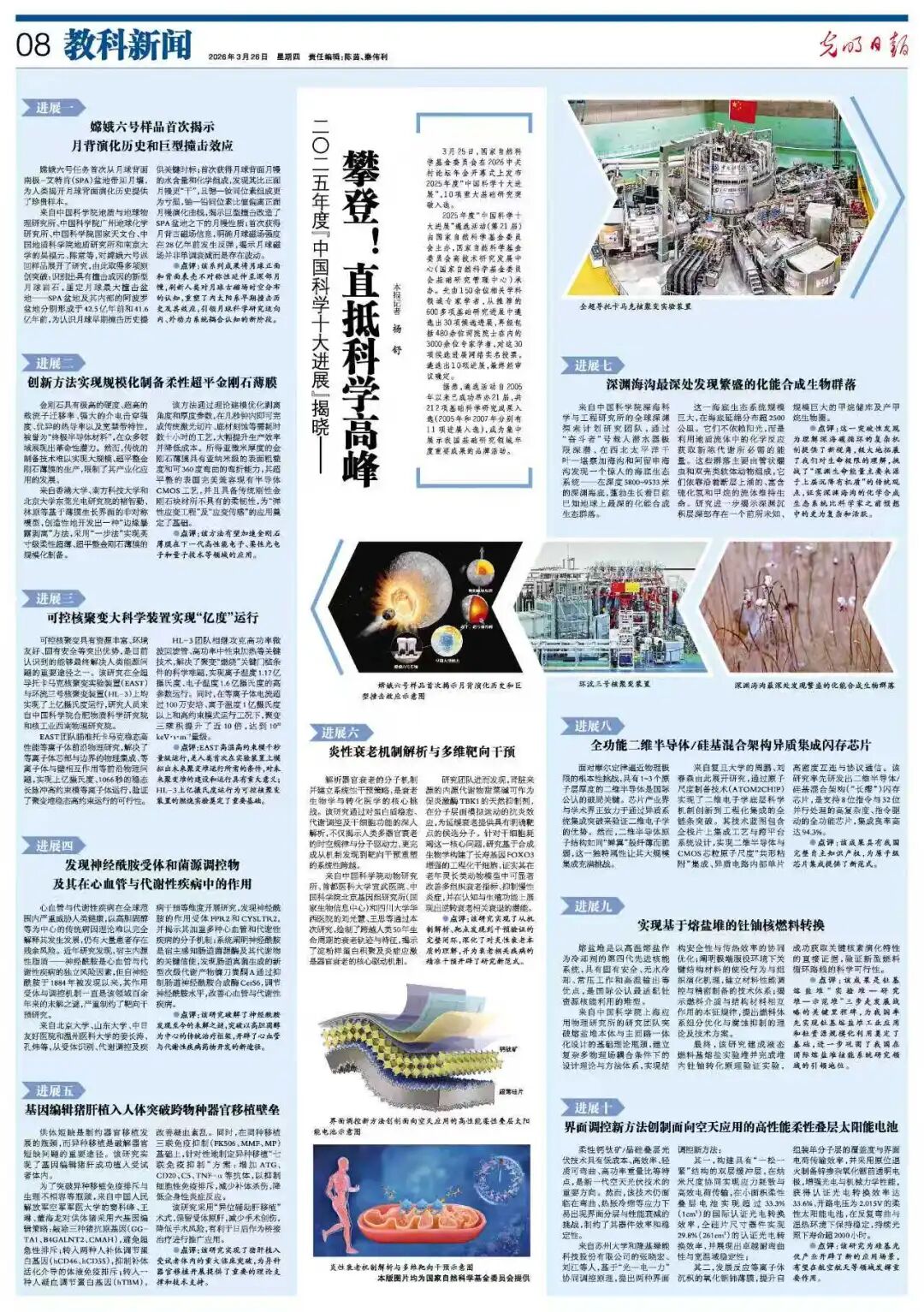 3月25日,国家自然科学基金委员会在2026中关村论坛年会开幕式上发布2025年度“中国科学十大进展”,10项重大基础研究突破入选。