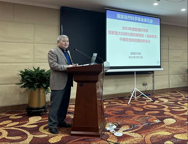 2024年3月19日,自然科学基金委数理科学部在北京召开了2023年度国家重大科研仪器研制项目(自由申请)中期检查与结题验收会议。自然科学基金委副主任江松院士出席会议并讲话。自然科学基金委数理科学部常务副主任董国轩主持开幕式,数理科学部副主任倪培根介绍有关情况。