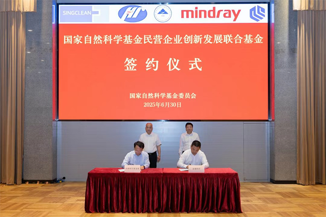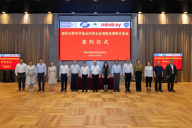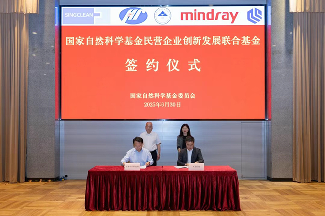2025年6月30日,国家自然科学基金民营企业创新发展联合基金协议签署仪式在北京举行。江苏恒瑞医药股份有限公司(以下简称恒瑞医药)、深圳迈瑞生物医疗电子股份有限公司(以下简称迈瑞医疗)、杭州协合医疗用品有限公司(以下简称协合医疗)、齐鲁制药有限公司(以下简称齐鲁制药)4家民营企业正式加入国家自然科学基金民营企业创新发展联合基金(以下简称民企联合基金),标志着我国民营企业深度参与国家基础研究迈出关键一步。国家自然科学基金委员会(以下简称自然科学基金委)党组书记、主任窦贤康,恒瑞医药总裁冯佶,迈瑞医疗高级副总裁李新胜,协合医疗董事长沈晶,齐鲁制药集团副总裁张明会出席会议并讲话。