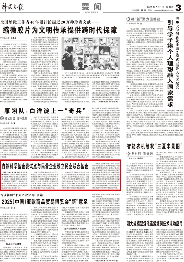 30日,国家自然科学基金民营企业创新发展联合基金(以下简称“民企联合基金”)协议签署仪式在北京举行。恒瑞医药、迈瑞医疗、协合医疗、齐鲁制药4家民营企业正式加入民企联合基金,标志着我国民营企业深度参与国家基础研究迈出关键一步。