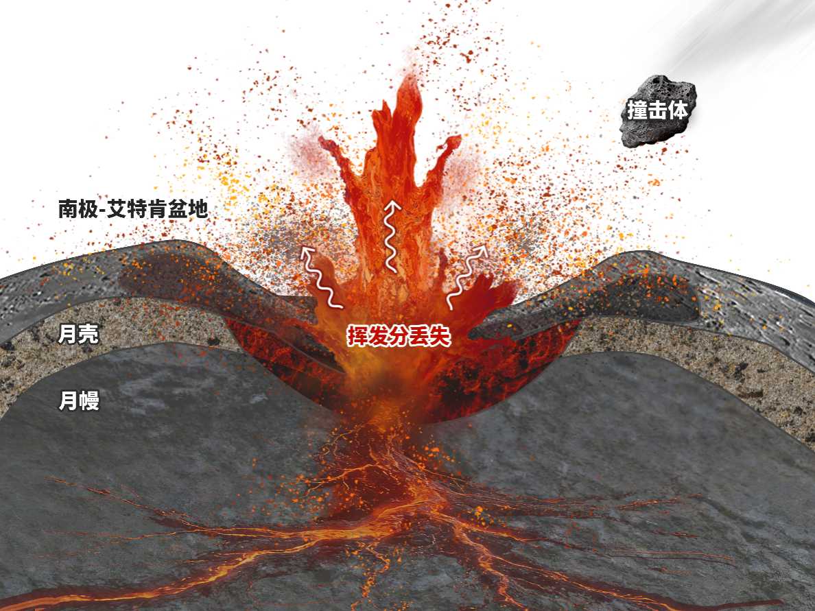 图 月球南极-艾特肯盆地撞击导致月幔物质挥发示意图