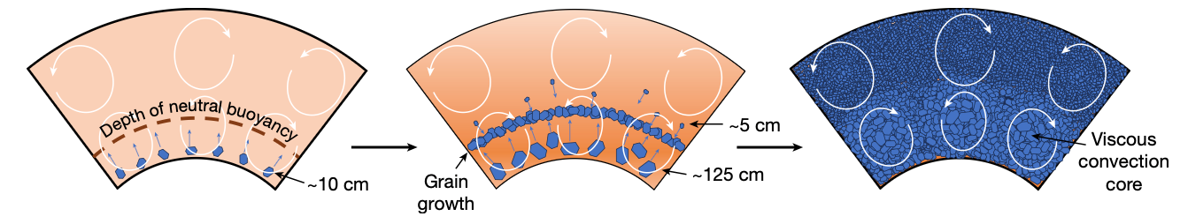 研究进一步指出,这类可能出现的巨晶将改变岩浆洋的凝固动力学模式。与细小晶体易被对流夹带、趋向整体混合凝固不同,大尺寸晶体更易发生有效沉降与聚集,在对流背景下增强分离结晶效率。团队将这一沉降—聚集过程形象称为“晶体雨”,并据此提出其可能促进显著的化学分异与地幔压实,为“分层凝固”假说提供新的、可量化的微观物理支撑。