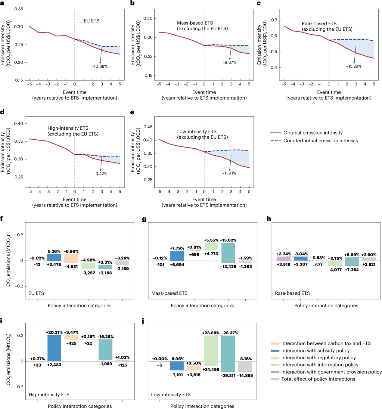 研究发现,碳定价政策的效果深受其与补贴、规制、信息披露和政府投入等配套政策之间交互关系的影响。在不同市场成熟度与制度环境下,这些交互既可能形成协同增效,也可能产生相互抵消。研究进一步提出,气候政策不应被视为孤立工具,而是需要持续校准与适应性改进的制度系统。研究通过反事实模拟预测了政策优化潜力。结果表明,如果能完全消除政策间的冲突并实现良好协同,碳定价的减排效能平均可提升至22.3%。