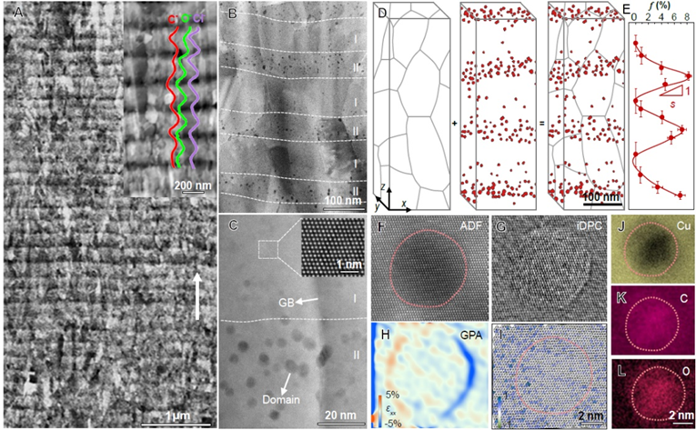 图 在铜箔内实现了3 nm的纳米畴基元在厚度方向上的周期性梯度序构