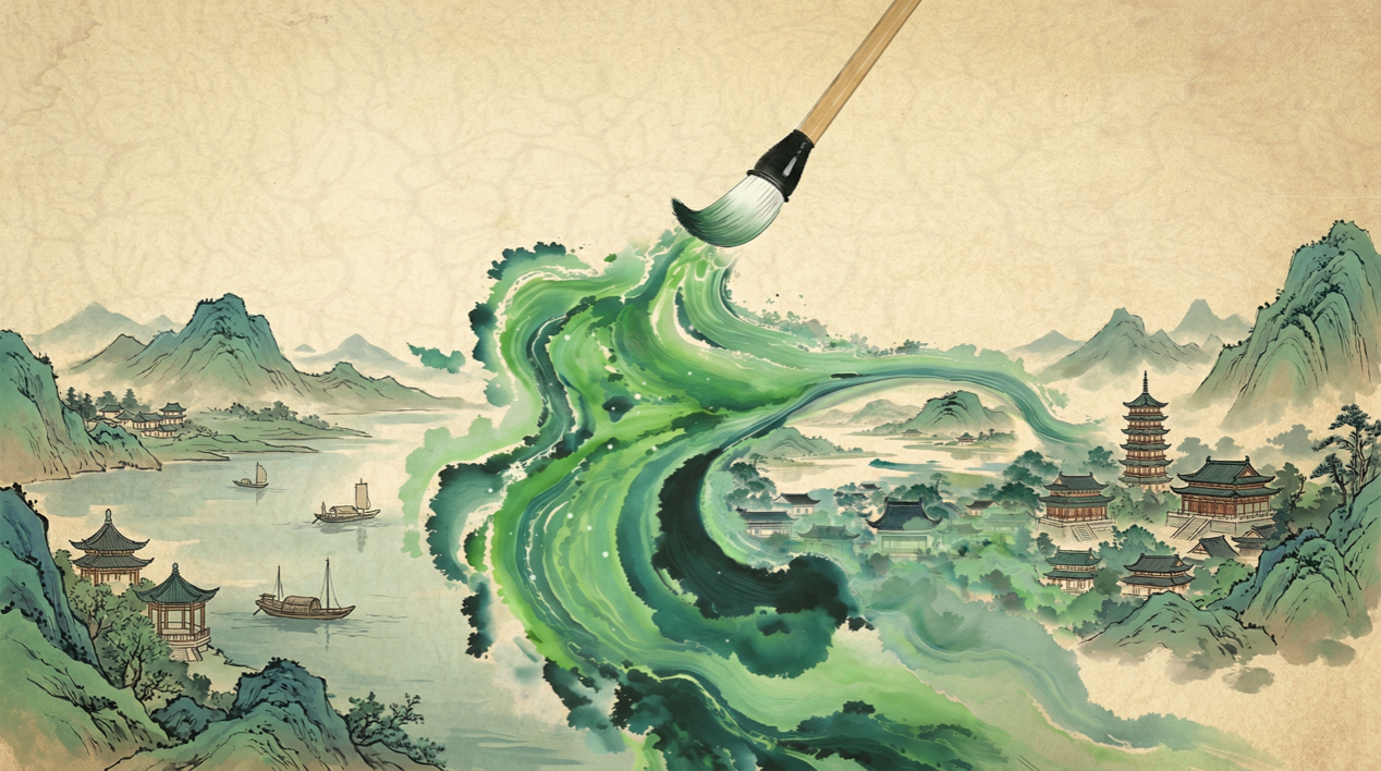 图1 我国学者创立了首个基于内质网相关降解(endoplasmic reticulum associated degradation,ERAD)途径的靶向蛋白降解技术。该技术利用小分子化合物,在pM-nM浓度下高效靶向降解跨膜蛋白,为神经退行性疾病及肿瘤等重大疾病的口服药物研发提供了新路径。图示为ERADEC作用机制的写意阐述:右侧山川建筑象征细胞,中央泼墨代表内质网,神奇画笔(ERAD)被靶向降解小分子(ERAD-engaging Chimera,ERADEC,即泼墨中的亮点)诱导,经由内质网相关降解途径选择性降解致病蛋白,从而实现抵御疾病(左侧船只)。