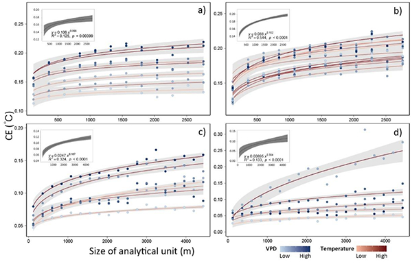 图 绿地降温效率随分析尺度增加呈幂函数变化规律