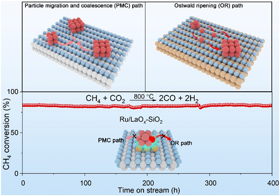 图 纳米岛结构催化剂的抗烧结机制及其在甲烷干重整反应中的催化性能