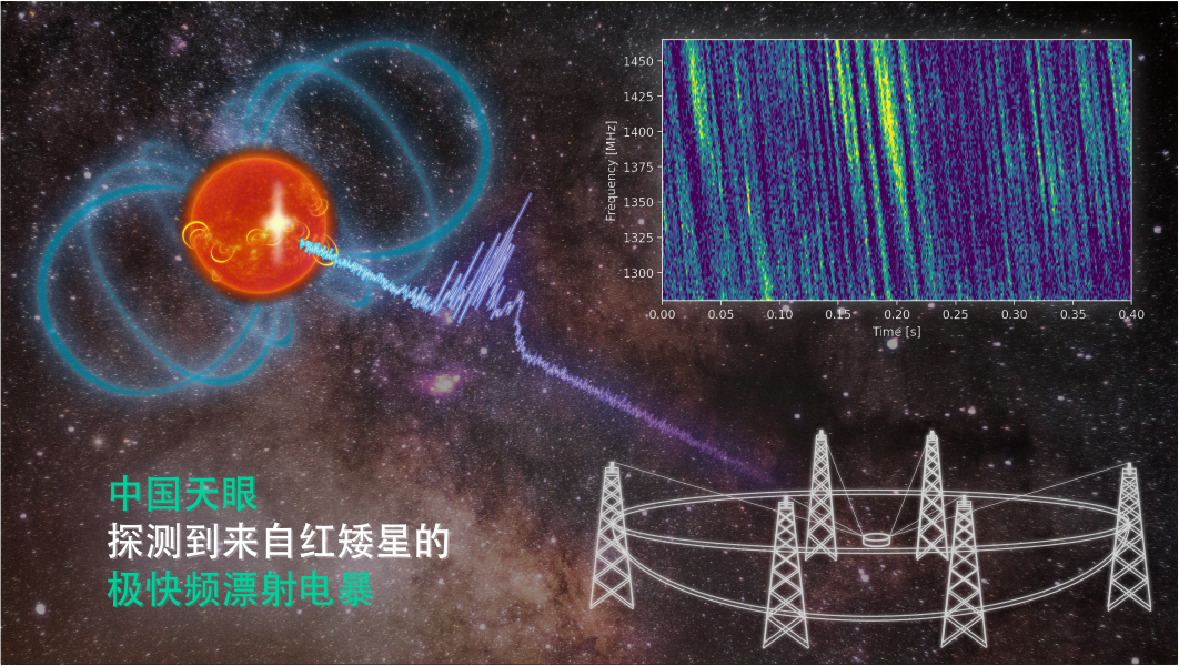 在国家自然科学基金项目(批准号:12425301)资助下,北京大学田晖教授团队利用“中国天眼”(FAST)首次探测到来自恒星黑子区域的毫秒级射电暴,为诊断恒星上的小尺度磁场结构提供了一种全新的方法。研究成果以“一颗红矮星上的超快漂移射电暴源自黑子(Starspots as the origin of ultrafast drifting radio bursts from an active M dwarf)”为题于2025年10月17日发表在《科学进展》(Science Advances)上,论文链接:https://www.science.org/doi/10.1126/sciadv.adw6116。