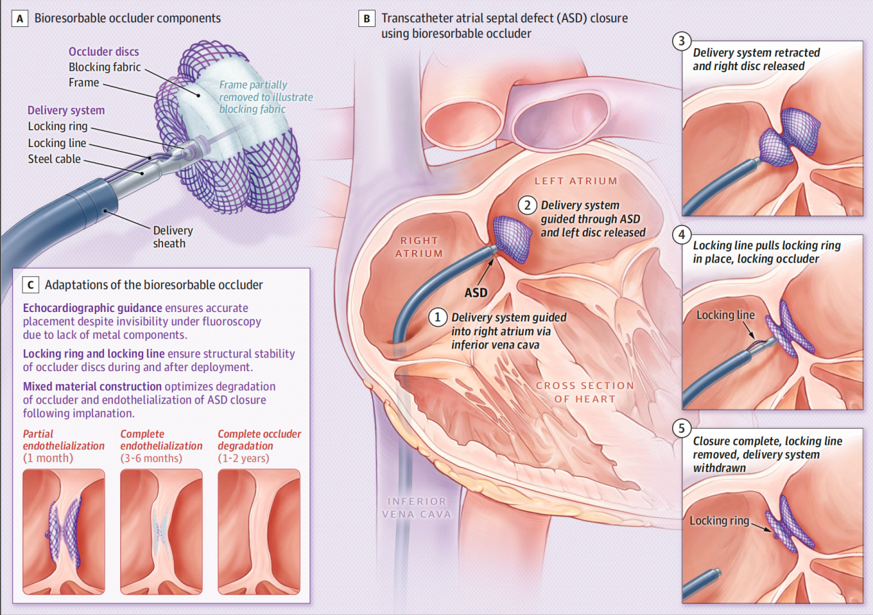 图 生物可吸收性房间隔缺损封堵器的植入与降解