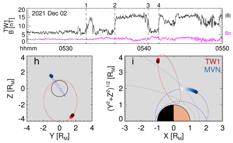 在国家自然科学基金项目(批准号:42130204、42188101、42404164)等资助下,中国科学技术大学汪毓明教授研究团队与海外合作者,利用我国“天问一号”环绕器的磁场和等离子体观测数据,结合美国“火星大气与挥发物演化”(MAVEN)探测器的观测数据,在火星弓激波对太阳风响应方面取得进展。相关结果以“弱扰动太阳风条件下火星弓激波的振荡(Bow Shock Oscillations of Mars Under Weakly Disturbed Solar Wind Conditions)”为题,于2025年10月31日在线发表于《自然•通讯》(Nature Communications)。论文链接:https://www.nature.com/articles/s41467-025-65011-8。