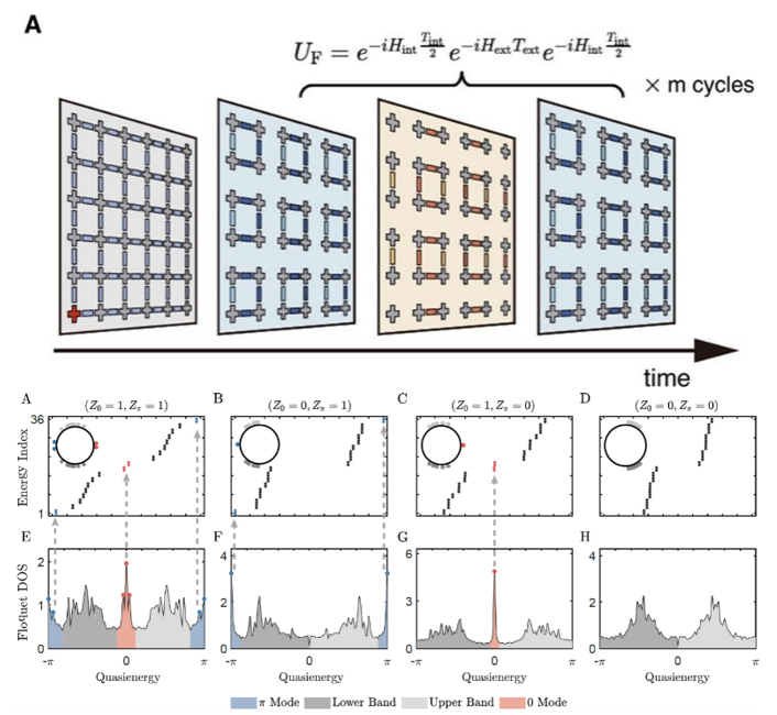 图 实验在6x6二维比特阵列上实现周期性驱动,实现了对于非平衡二阶拓扑物态准能谱信息的探测,与理论预言结果一致