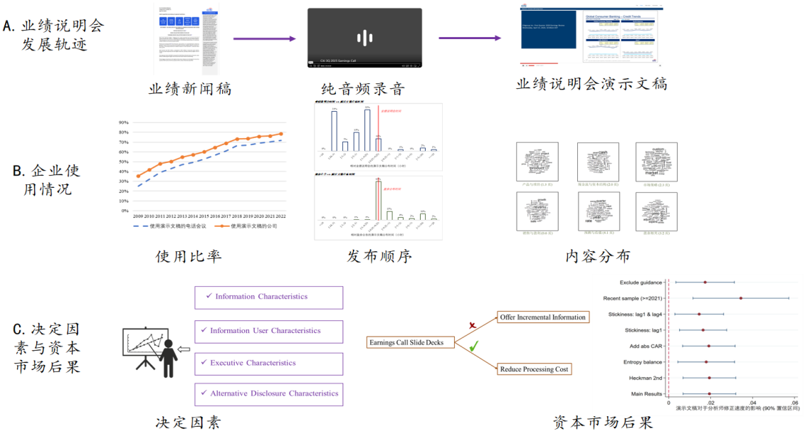 在国家自然科学基金项目(批准号:72402110、72442014)资助下,清华大学经济管理学院的青年学者许达助理教授,在企业信息披露与资本市场领域开展的研究取得进展。其独立作者论文以“业绩说明会演示文稿(Earnings Call Slide Deck)”为题,于2025年11月在《管理科学》(Management Science)在线发表。论文链接:https://doi.org/10.1287/mnsc.2024.04956。