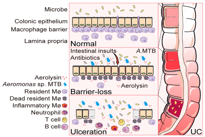 图 Aeromonas sp MTB菌破坏巨噬细胞屏障溃疡性结肠炎易感性升高